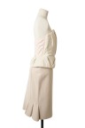 Ensemble comprenant une jupe crayon en laine beige légèrement volantée à l'ourlet arrière et un bustier en lainage beige structuré monté sur corset avec fermoir à pression au dos T. 36 et 38 Excellent état général