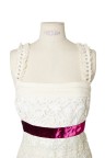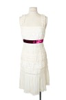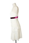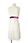 Robe courte en crêpe de soie crème, dentelle et sequins Large bande de velours pourpre Bretelles lacées T. 42 IT Excellent état général