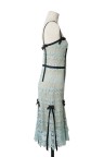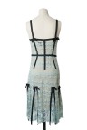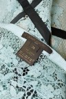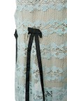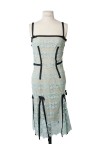 Robe du soir en soie et dentelle bleu ciel Empiècements de noeuds en soie noire T. 38 Excellent état général