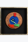 Collage de bois, sable et coquillages peints dans un emboîtage en bois peint