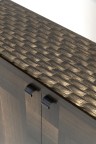 Paire de bibliothèques basses - Pièces uniques Chêne marais, verre garni d’or de l'Atelier Pictet Chaque élément marqué au feu ‘LUDWIG & DOMINIQUE 2012’ Modèle créé en 2012 H 86,4×L 365×P 30cm