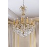 Lustre en bronze doré et verre taillé à dixhuit branches feuillagées, cordelettes et passementeries, à pendeloques et cabochons à
