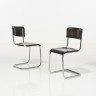 MARCEL BREUER (1902-1981) & THONET (ÉDITEUR) Paire de chaises, édition Thonet n°B431, piètement tubulaire en tube d'acier chromé, assise et dosseret en contreplaqué de hêtre thermoformé laqué noir. Plaques circulaires d'éditeur. 83 x 39 x 50 cm Bibliographie: Deutsche Stahlrohr Möbel, Alexander von Vegesack, Bangert Verlag, Münich 1986. p.131 reproduit dans le catalogue Thonet 1935