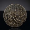 Médaille en bronze. F/ Christ en buste de profi gauche entouré de l'inscription : EGO SVM VIA VERITAS ET VITA (Je suis le chemin, la vérité, la vie) ; R/Crucifiion. Exemplaire rare. Italie, Rome, d'après un suiveur de Giovanni Antonio de' Rossi pour le buste de Christ, d'après Giovanni Bernadi (1493-1553) pour la Crucifiion, XVIe siècle Ø 8,7 cm (trois trous de fiation et petit manque en bordure) Provenance : - ancienne collection privée, Etats-Unis - ancienne collection David Abbate - ancienne collection Michael Hall Le buste de Christ est d'un modèle largement diffsé sur des médailles Renaissance ; il est attribué à un artiste anonyme dans la suite des bustes de Christ initiés par le médailliste Giovanni de' Rossi (1513-après 1575). La Crucifiion quant à elle est une composition reprise d'un cristal de roche taillé par Giovanni Bernardi conservé au Cabinet des Médailles (Inv.No. RC-B-14463/MED H 2861). Cette intaille fait partie d'une suite de neuf cristaux ayant pour thème la vie du Christ réalisée pour Alessandro Farnèse (1520-89).