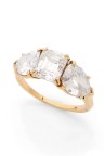 Magnifique bague en or jaune 18k (750‰) ornée d'un diamant rectangulaire à pans coupés taillé à degrés de 1,87 carat entre deux diamants poire d'environ 1,40 carat chacun