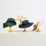 MONIQUE DOFNY. Ensemble de quatre capelines en paille fine d'Italie, dont une bleue, deux beiges et une verte.