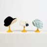MONIQUE DOFNY. Ensemble de trois chapeaux dont un en velours, un en soie sauvage et un en cuir crème.