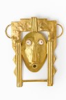 Important pendentif broche en métal doré centré d'un masque