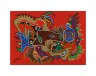 Composition sur fond rouge Tempera sur toile Signé et daté en bas à gauche 59 × 82,5 cm