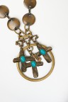 Important collier retenant un anneau et trois croix centrées respectivement d'un cabochon bleu turquoise Longueur : 74 cm Dimensions du pendentif : 10 x 7 cm