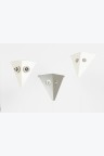 Le masque est un objet culturel, utilisé dans le monde entier à toutes les époques, il est aussi varié dans son apparence que dans son utilisation et son symbolisme. Il permet d’offrir à celui qui le porte un nouveau visage, de nouvelles qualités, de nouveaux pouvoirs. Cette Prismatic Table de Noguchi est ainsi transformée en 3 masques, lui offrant ainsi un nouveau regard.