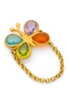 Bague "Papillon" en or jaune 18k (750‰), l'anneau en forme de chaîne, ornée de tourmalines, péridot et améthyste poire Tdd : 51 Poids brut : 2,2 g Exempté de Garantie