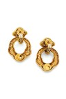 Paire de clips d'oreilles en or jaune 18k (750‰) à décor de vagues pavés de diamants taille brillant, chacun retenant un anneau (amovible)