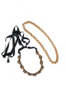 – Collier en métal cuivré et ruban de soie – Collier/ceinture en métal cuivré à maillons forçat hexagonaux
