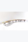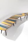 Ensemble de quatre modules formant table modèle 'Off Cut Lino' Teck, linoléum et métal laqué Édition Nilufar Modèle créé en 2019 Dans sa configuration : H 74,5 × L 867 × P 100 cm Chaque table (environ) : H 74,5 × L 212 × P 100 cm