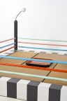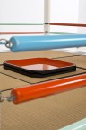 Tawaraya Ring de boxe Bois, plastique, métal, tatami, textile et verre Edition Memphis Date de création : 1981 H 165,1 × L 280,7 × l 281,7 cm