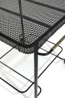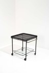 Desserte roulante Tôle perforée, laiton et verre Modèle créé en 1956 H 70 × L 66 × P 66 cm Bibliographie : 'Mathieu Matégot', P. Favardin, Éditions Norma, 2014, modèle similaire p. 100