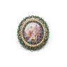 Médaillon ovale en argent et vermeil partiellement émaillé ornée d'une miniature à décor d'une scène galante dans un double entourage de demi-perles probablement fines et d'une guirlande festonnée sertie d'émeraudes calibrées
