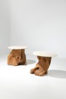 Table d’appoint - Pièce unique Séquoia et travertin Modèle créé dans les années 1970 H 73 × L 86 × P 69 cm