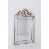 Miroir à parecloses dans le goût de Venise, le fronton ajouré à décor de rinceaux et médaillons gravés, les cotés à décors gravés. H 157 x L 97 cm