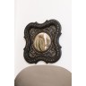 Miroir sorcière de forme quartefeuille en bois noirci et marqueterie de nacre. H 50 ר 24 cm (miroir)