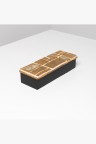Mithé Espelt (1923-2020) Boîte modèle 'Cuzco' Céramique émaillée rehaussée d'or, pâte de verre et bois noirci Modèle créé vers 1975 H 6 × L 27 × P 6,5 cm