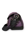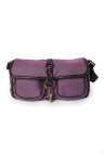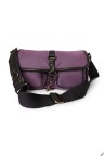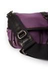 Circa 2000 Sac bandoulière en tissu technique violet et gros grain noir Fermoir à crochet à l'avant Double poches plaquées sous le rabat 13 x 24,5 x 9 cm Bon état général, légères usures