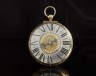 Montre de carrosse en laiton ciselé, gravé et ajouré à décor de scènes de chasse dans des entrelacs de rinceaux ; mouvement signé Nicolas Gribelin. Cadran annulaire en métal argenté avec centre orné de fleurons feuillagés à volutes, aiguilles des heures et du réveil en acier bleui aux extrémités en fleurons ajourés, chiffres romains pour les heures ; mouvement avec coq français à trois fleurons feuillagés, ajourés et gravés, échappement à verge, balancier à spirale, ressort de cliquet à fin enroulement feuillagé en acier bleui ; sonnerie "au passage" des heures. Paris, Nicolas Gribelin horloger, seconde moitié du XVIIe siècle Ø 10,7 cmNicolas Gribelin est un des horlogers parisiens parmi les plus réputés de son temps. Fils d'un horloger, il naît à Blois, creuset de l'horlogerie française, en 1637 et a été reçu maître au Faubourg Saint-Germain à Paris en 1675. Proche de la cour, il travailla souvent pour le Grand Dauphin comme l'atteste la présence de quatre de ses pendules dans l'inventaire dressé en 1689 du Cabinet de "Monseigneur". Il réalisa aussi plusieurs de ces pendules en collaboration avec André-Charles Boulle, premier ébéniste du Roi. Il meurt en 1719 après nous avoir laissé de nombreuses oeuvres à présent conservées dans les grands musées.