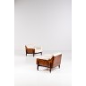 Moveis Bertomeu (XXe) Paire de fauteuils Bois lamellé-collé, placage d'imbuia, métal et textile Édition Moveis Bertomeu, Sao Paolo Modèle créé dans les années 1960-1970 H 67 × L 78 × P 75 cm
