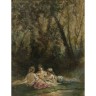 Narcisse DIAZ de la PENA (bordeaux 1807 – Menton 1876) Trois femmes discutant dans un sous bois Aquarelle et rehauts de gouache blanche sur traits de crayon noir 23 x 18 cm Signé en bas à droite Importante déchirure sur le bord droit (3 cm), pliures