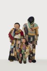 Ensemble de trois poupées en tissus cousus et structure en fer