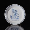 Nevers Assiette en faïence à décor en camaïeu bleu au centre d'une figure de saint Maurice l'inscription St Maurice 1764, galon à motifs d'écailles sur le bord. XVIIIème siècle. D. 24,5 cm. Provenance : Succession de M D.