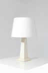Lampe ‘Thèbes’ Parchemin gainé sur bois et textile Signée au feu sous le piétement Modèle créé en 1998 H 80ר 50cm