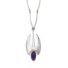 Collier en argent (925‰) à maillons bâtonnets retenant un pendentif moderniste serti d'une pierre violette cabochon.