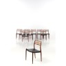 Niels Otto Moller (1920-1981) Modèle n°7273 Série de dix chaises Palissandre et cuir Edition J. L Møllers Møbelfabrik Etiquette de l’editeur Date de création : vers 1950 H 80 × L 50 × P 43 cm