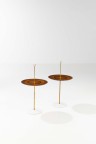 Nino Zoncada (1898-1988) Modèle AZ 1001 Paire de tables d’appoint Laiton, marbre, noyer, poirier et chêne Édition Altamira Modèle créé en 1952 H 78 × Ø 42 cm