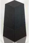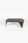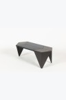 Deux pièces de hêtre teinté sont insérées dans la géométrie parfaite en trois éléments de la Prismatic Table. Ces deux pièces éloignent les pieds et en changent la proportion. Elle devient asymétrique et composite, comme augmentée par ces éléments de bois.