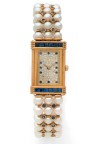 Montre bracelet de dame en or 18k (750) avec saphirs et perles