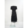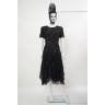 OLEG CASSINI BLACKTIE ROBE COCKTAIL en crêpe noir avec effet faux deux-pièces, corsage rebrodé sur jupe foulard T 12 US Micro manques probables Iconographie : droits réservés