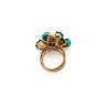 Originale bague "ressort" en fil d'or 14k (585‰) torsadé retenant en pampille six cabochons de turquoise matrix Tdd : 52 (ajustable) Poids brut : 11,6 g