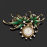 PATEK PHILIPPE, Genève. Années 1950-1960. Broche pouvant former pendentif en or jaune 18 k (750°/oo) et platine à décor de fleurs, partiellement émaillé vert et serti de petits diamants ronds de taille brillant. Elle est ornée d'une montre, le cadran émaillé crème, index bâtonnets, le mouvement mécanique. Signée Patek Philippe sur le cadran, le boîtier et le mouvement n° 949410. Référence 3117 & 671170. (Petit choc et manque à l'émail). Poids brut: 24,3 g
