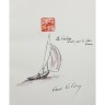 POËSIE. ESSAIS SUR LA POËTIQUE ET LE POËTE. Paris, Guégan, 1928. In-4, demi-maroquin rouge, dos à 5 nerfs orné, tête dorée (P.-L. Martin). Édition en partie originale ornée de 8 eaux-fortes originales hors-texte dessinées et gravées par Paul Valéry. Textes inédits pour "Préambule", "Calepin d'un poète", "Poésie pure. Notes pour une conférence", Retour à la poésie" et "Comment je revins à la poésie". Un des 25 exemplaires sur Japon blanc impérial, tous signés par l'auteur. Ce voilier / n'est pas le plus / beau / Paul Valéry; avec dessin à l'encre et à l'aquarelle représentant un voilier naviguant avec un idéogramme chinois frappé à l'encre rouge.