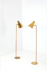 Paire de lampadaires modèle n°9628 Laiton et rotin Édition Taito Oy Chacun estampillé 'Taito' Modèle créé vers 1950 H 142×L 23×P 20cm H 144×L 24×P 29cm Bibliographie : Catalogue commercial Idman n°136, 1954, modèle illustré p.61