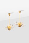 Paire de suspensions modèle n°9029/3 Laiton et verre Édition Taito Oy Estampillées ‘OYTAITOAB 9029’ Modèle créé vers 1950 H 93 × Ø 60 cm Bibliographie : Catalogue commercial Idman, n°136, 1954, modèle illustré en couverture et p. 6