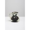 Terre de faïence blanche et décor à la paraffine oxydée, émail blanc, noir