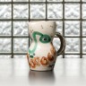 Pichet tourné en terre de faïence blanche, décor aux engobes sous couverte partielle au pinceau, patine grise