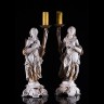 Paire d'anges céroféraires en bois sculpté, monochromé avec rehauts de dorure. Debout et vêtus à l'antique, ils ont une jambe fléchie prenant appui sur l'autre, tenant chacun une torche sortant d'un fleuron ; base à quatre volutes et tête d'angelot. Allemagne du sud ou Italie du nord, XVIIe siècle Hauteurs : 83 cm (ailes manquantes)