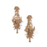 Paire d'appliques aux trophées de carquois et chutes de noeuds de rubans en bois doré et sculpté à trois lumières et branchages en m...