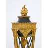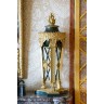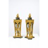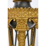Paire d'athéniennes en bronze patiné et doré, base tripode, pieds griffes, colonnes plates, pommes de pin Style du XIXème siècle H 70 cm