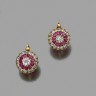 Paire de boucles d'oreilles "dormeuses" en or jaune 18k (750‰) ornées de diamants de taille ancienne dans un double entourage de rubis et de diamants.